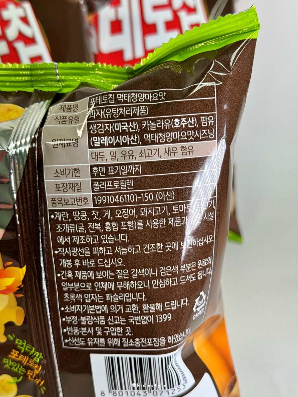생감자 (미국산), 카놀라유 (호주산), 팜유 (말레이시아산, 먹태청양마요맛 시즈닝 등