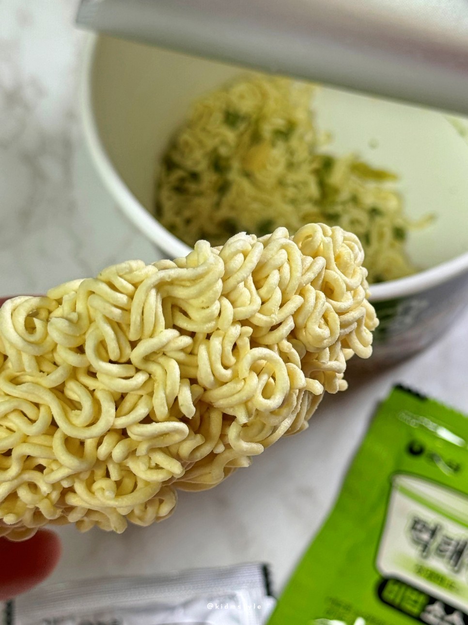 조리법은 끌는물을 붓고 3분 후 물을 버리고 스프류를 넣고 비비면 된다.