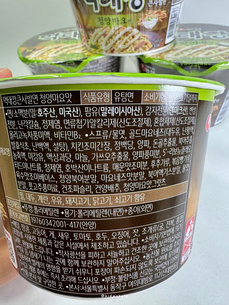 농심 먹태깡 큰사발면 청양마요맛 영양성분 정보