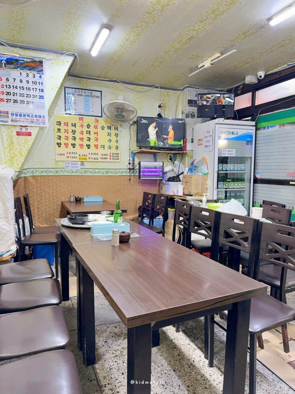 국밥 한 그릇에 낮술 한 병 드시던 손님이 나가고 실내도 찍어본다. 오래된 벽지, 도끼다시 바닥, 미닫이문 등 노포 느낌이 가득하다.