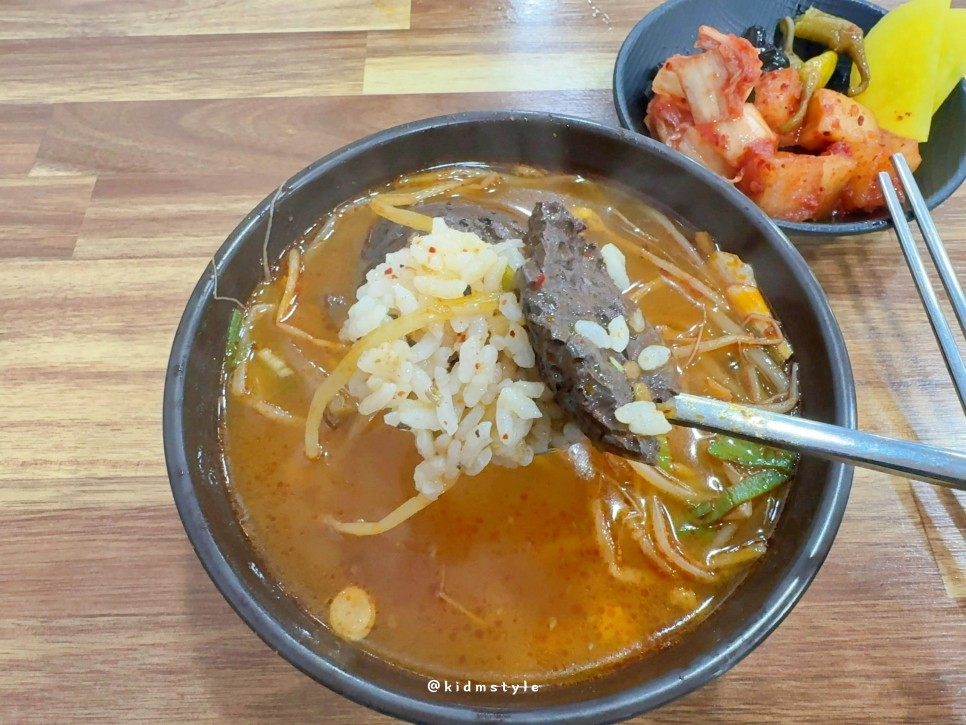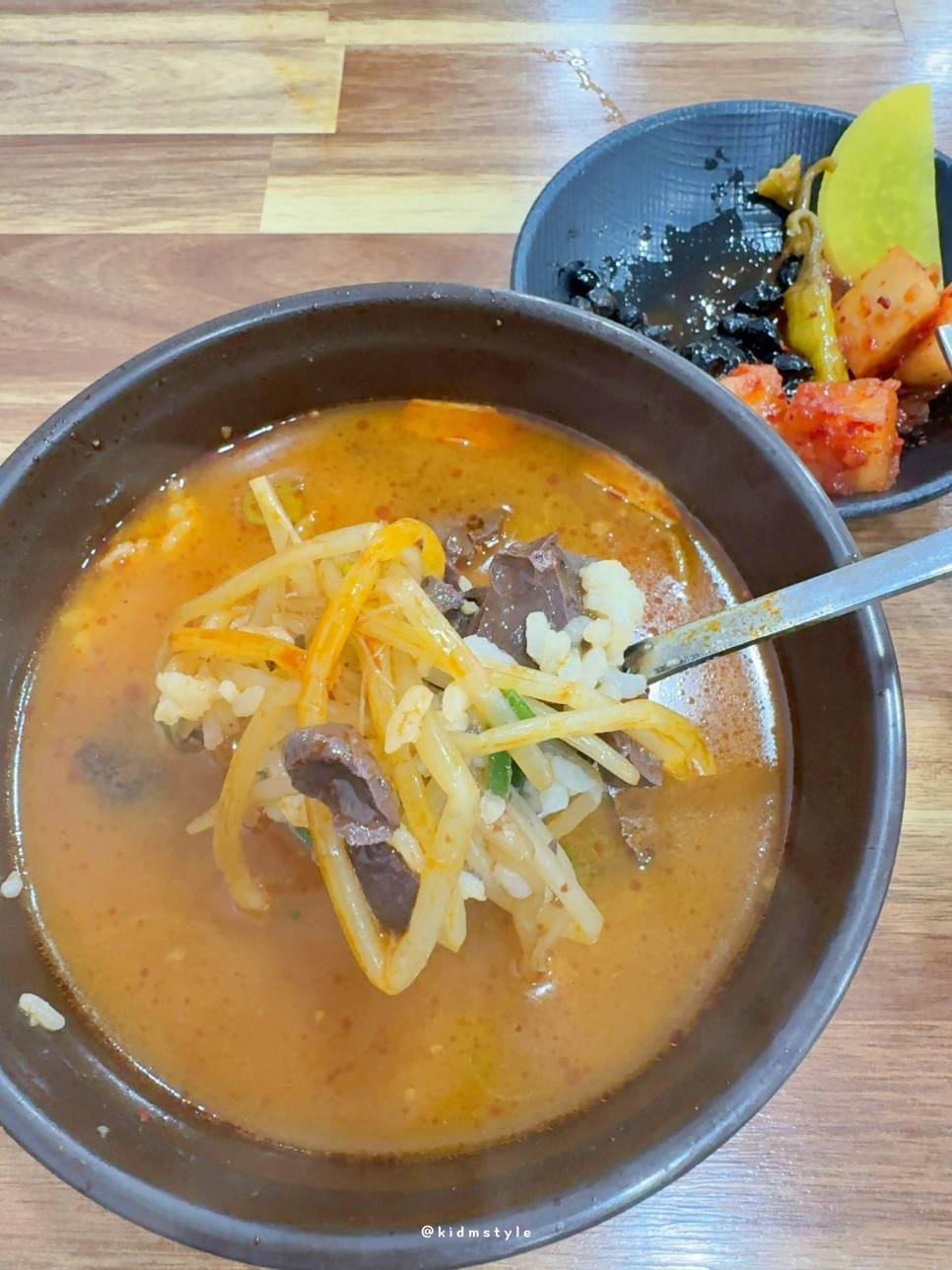 진한 선짓국을 좋아하지만 이렇게 소고기국밥 스타일의 선짓국도 괜찮다. 선지 입문하기 좋을 듯