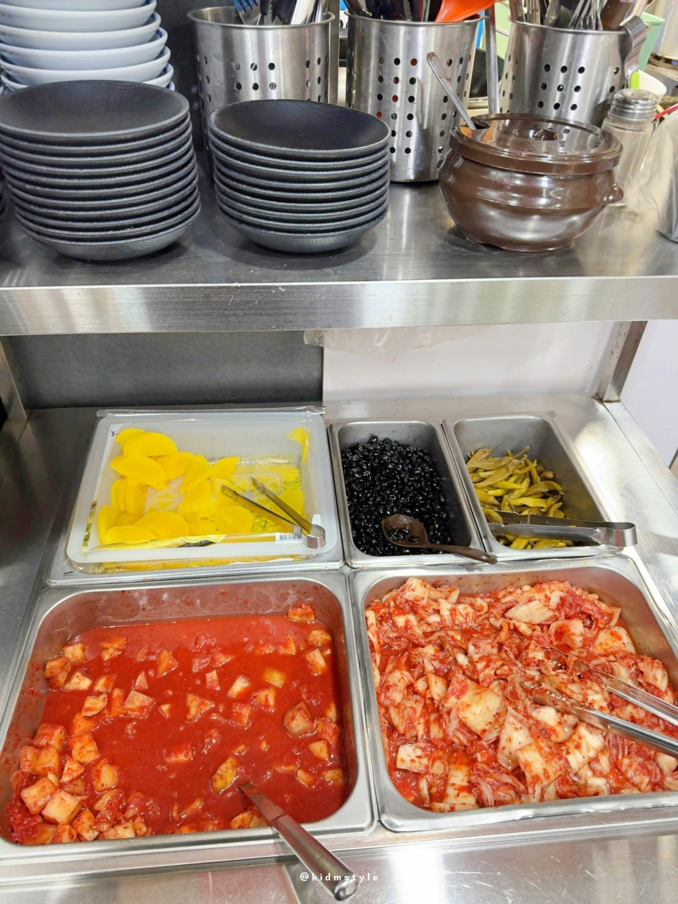 주문을 하고 셀프 코너로 가서 반찬을 취향껏 담으면 된다.
