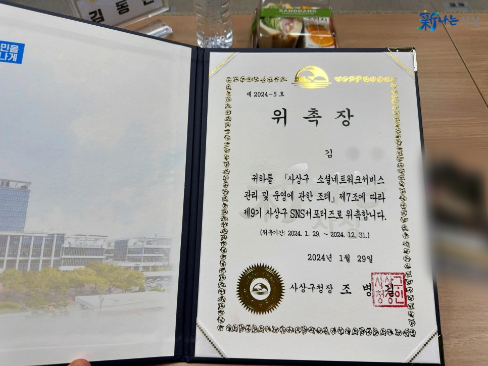 그리고 이어서 제9기 활동 위촉장을 전달받으며 올해 2024년의 사상구 sns 서포터즈 활동을 시작하는 첫 발걸음을 시작하였습니다.