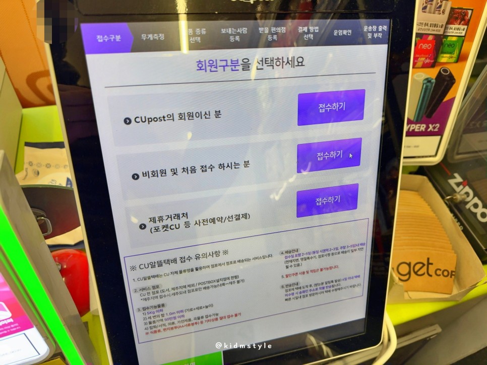 CUpost 회원인지, 비회원인지, 포켓CU 등 인지에 따라 접수하면 된다.