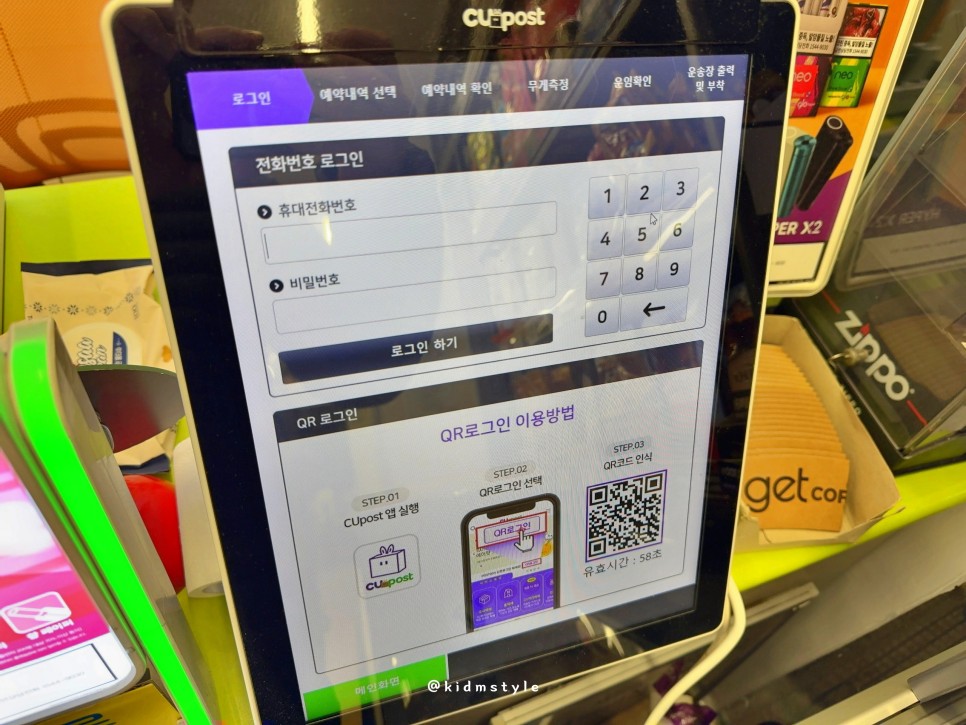 나는 CU POST 회원이므로 로그인을 바로 했다. 하나하나 칠 필요 없이 CUpost 앱에서 QR 로그인으로 바로 로그인했다.