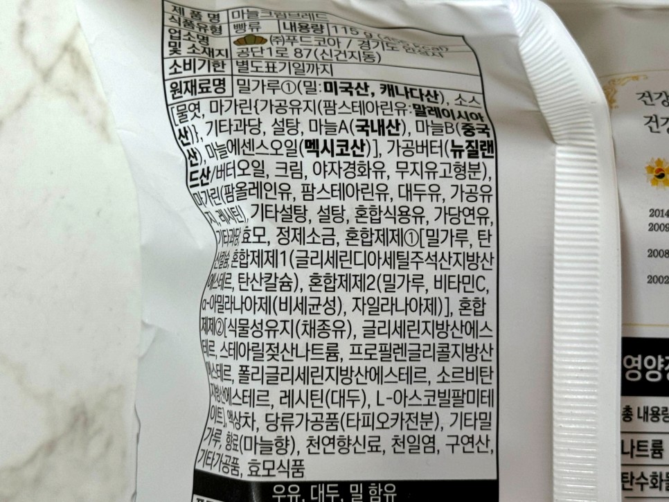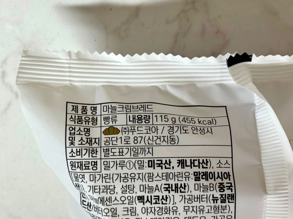 명장빵 마늘크림브레드 베이크하우스 405 영양성분정보 참고