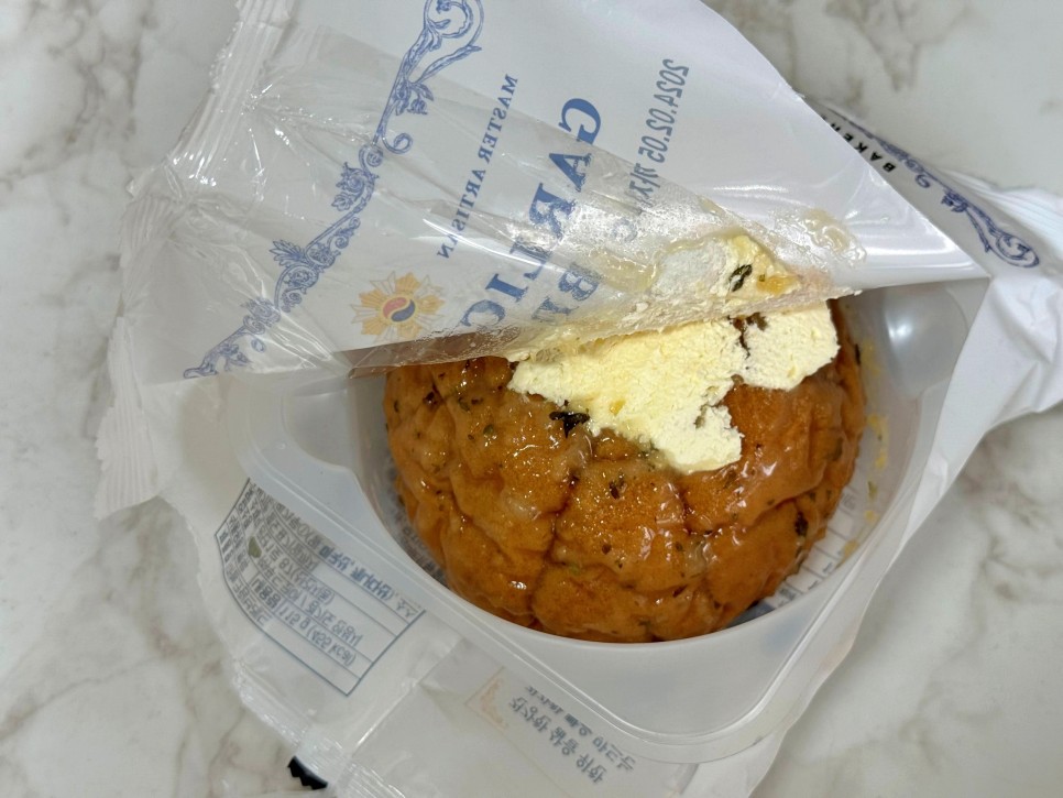 맛은 우리가 생각하는 마늘크림빵의 그 맛 그대로이다. 맛있다. 빵이 엄청 촉촉하고 부드러운 편은 아니다.