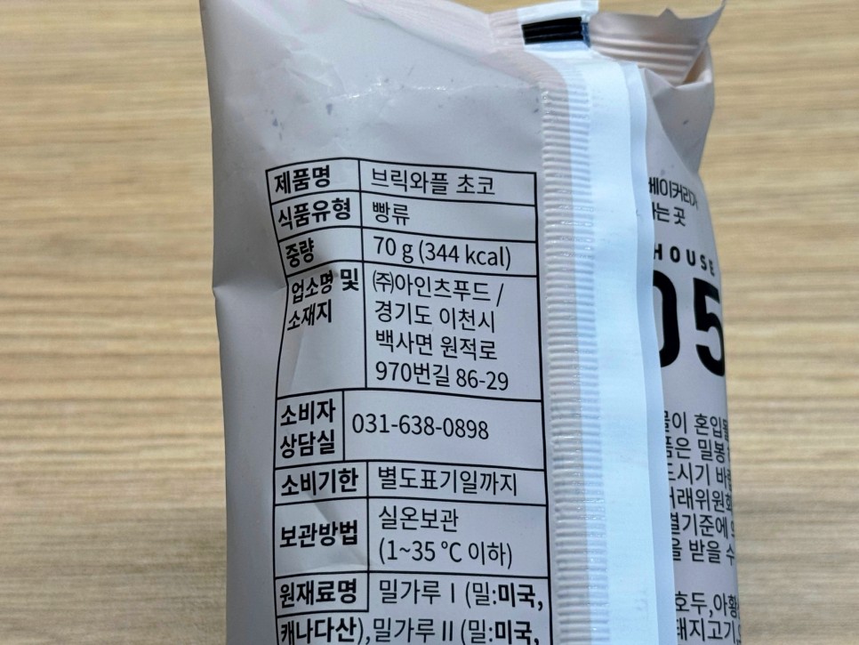 베이크하우스 405 브릭와플 초코 영양성분 정보 참고