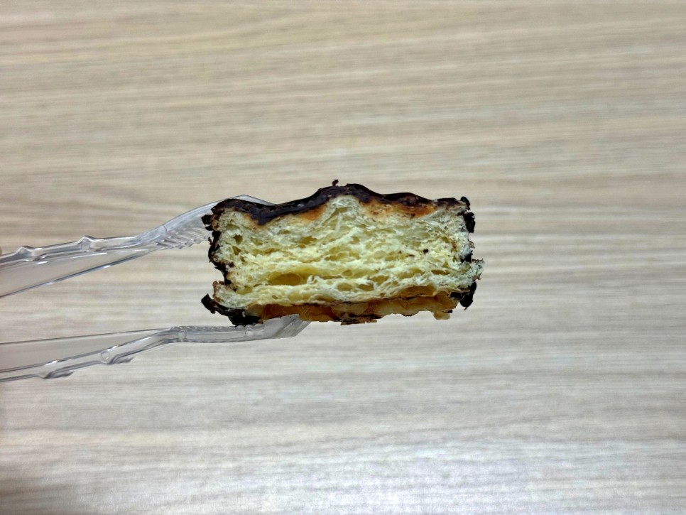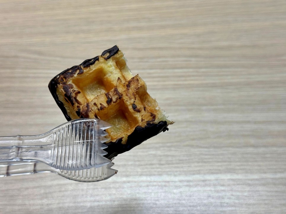 속은 고소한 페스츄리와플이고 겉은 초코가 꽤 많이 발라져 있는 것을 볼 수 있다.