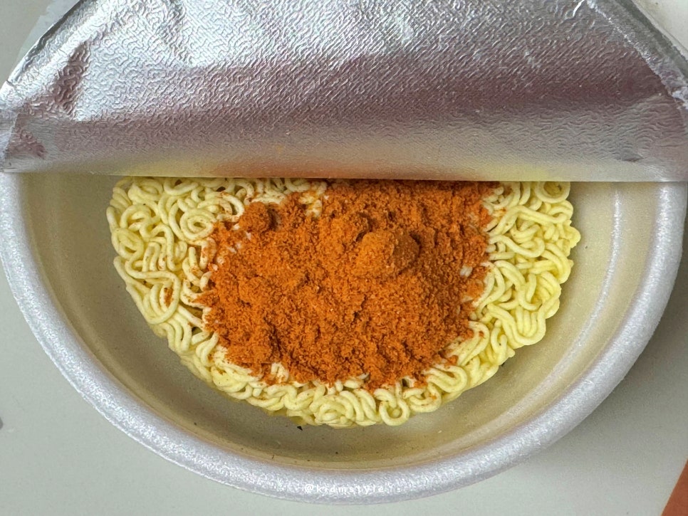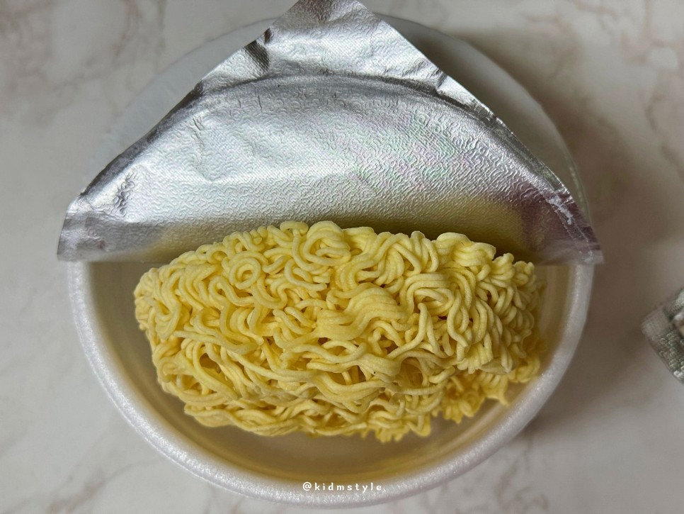 뚜껑을 열고 면을 보니 일반적인 얇은 면발이 눈에 들어온다.