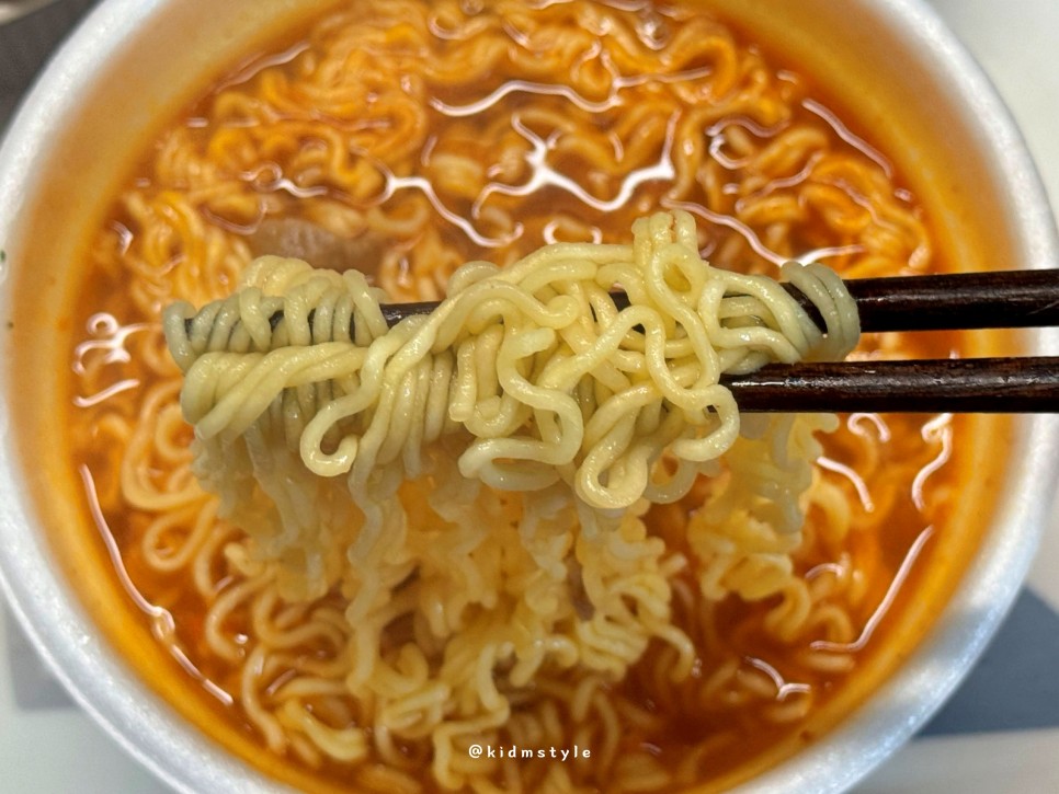 면발을 맛보니 우리가 흔히 먹는 육개장 컵라면 그 맛이다.