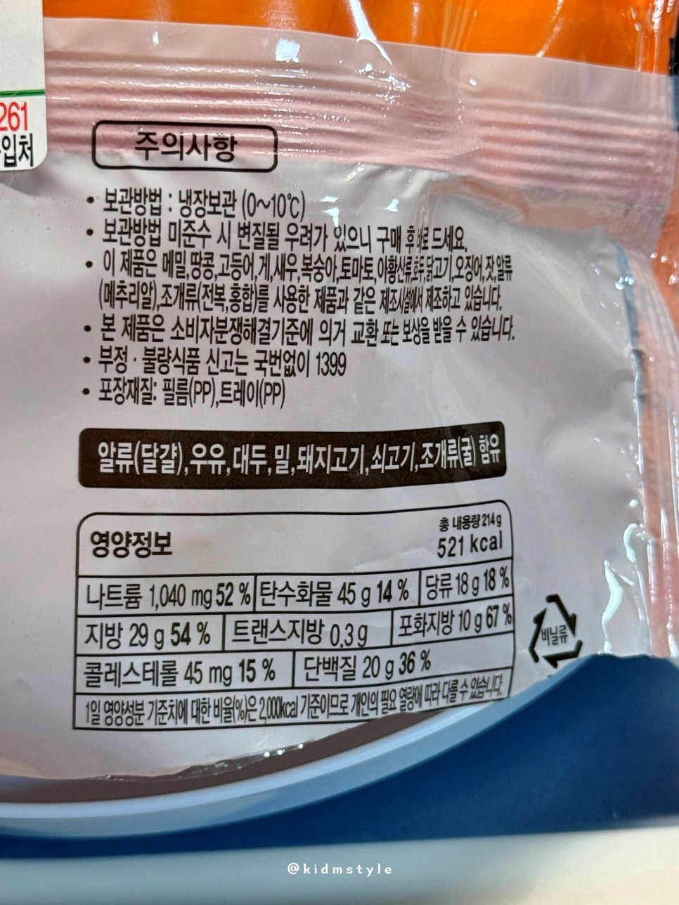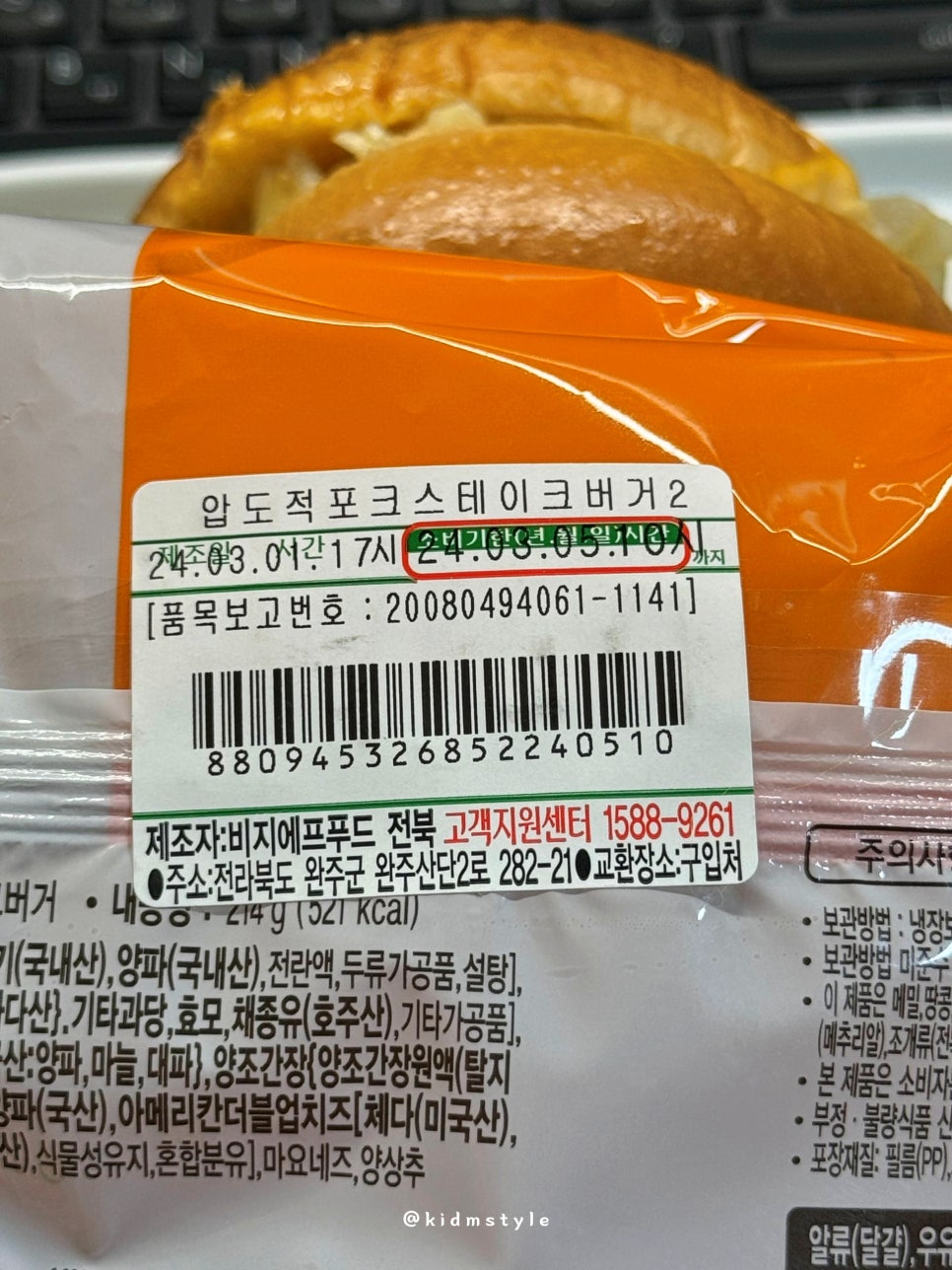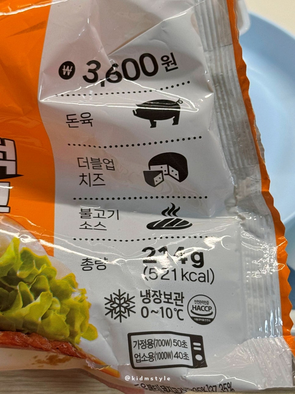 돈육, 더블업 치즈, 불고기 소스, 214g에 521kcal, 냉장 보관