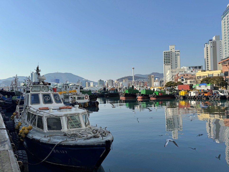 갈매기 모양의 자갈치시장 건물도 반갑고요. 부산타워도 반갑습니다. 어릴 때 부산으로 이사 와서 30년 넘게 살고 있는 동네를 이렇게 바라보니 좋네요.