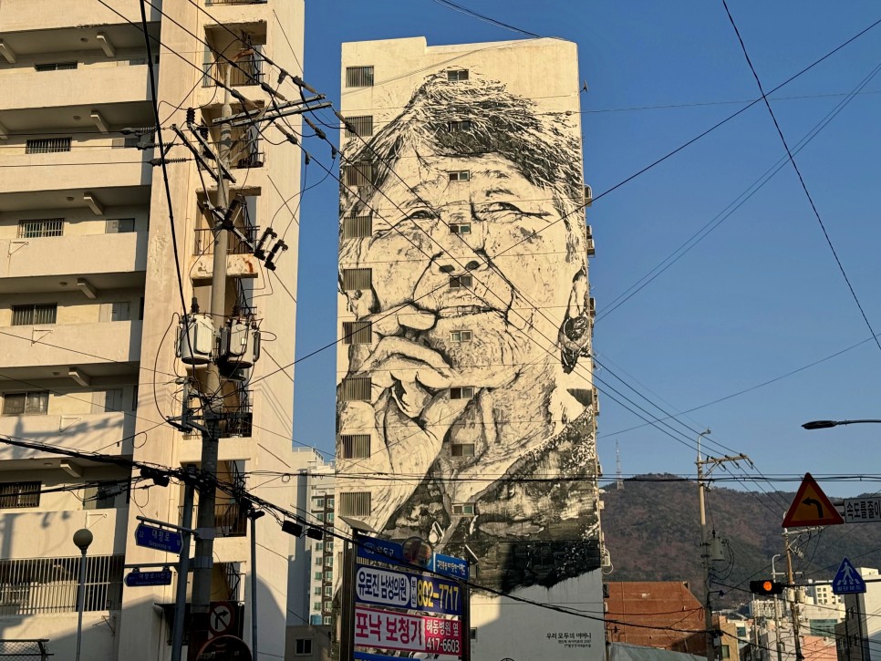 어느 아파트 외벽에 그려져 있는 깡깡이 아지매의 모습은