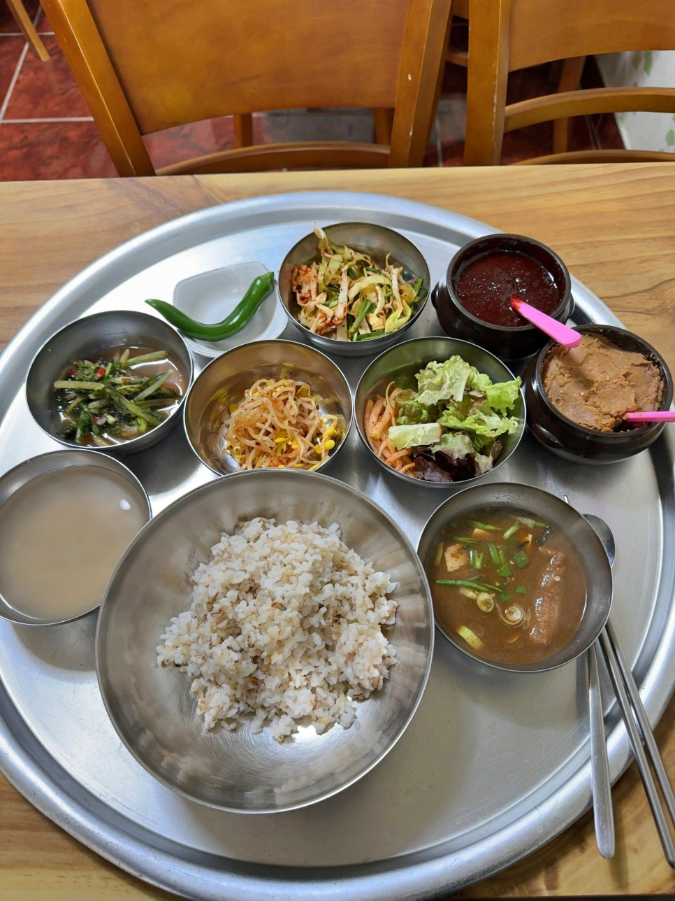 된장찌개가 너무 맛있어서 여쭤보니 시골에서 직접 담은 된장으로 끓이셨다네요.