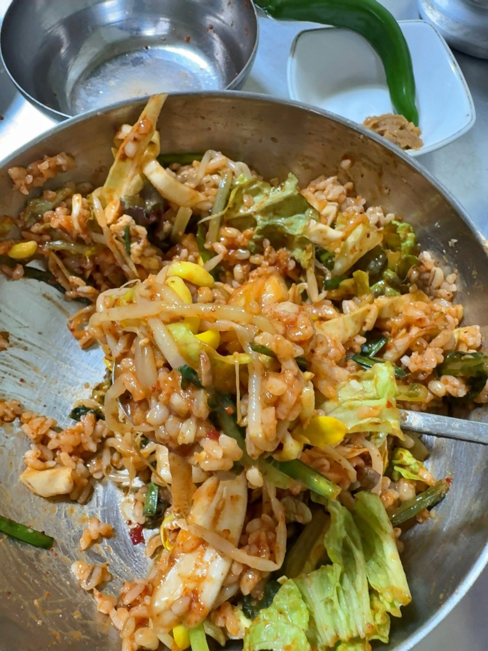 이것저것 다 넣고 맛있게 비벼봅니다.