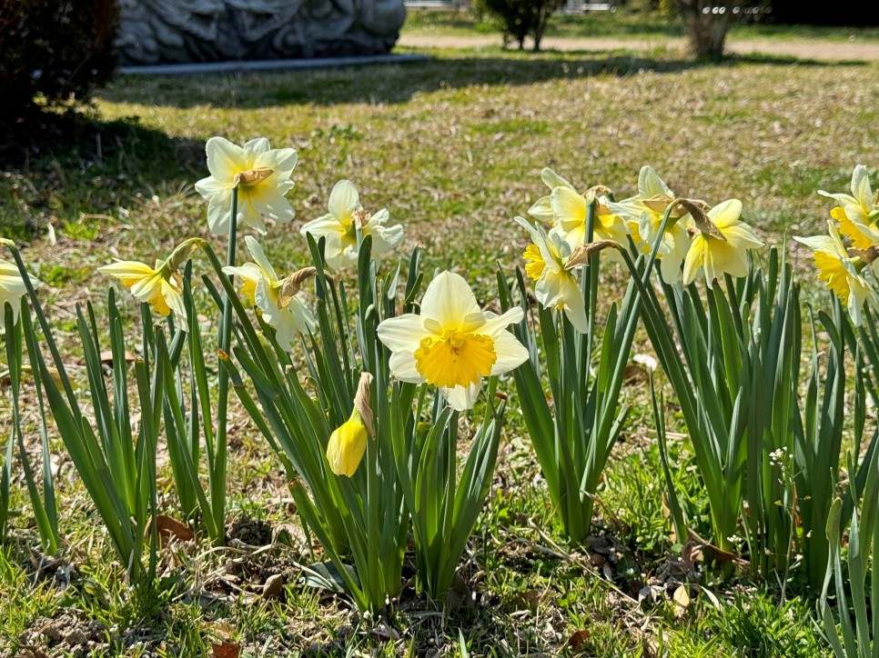 공원 광장 한 쪽에 수줍게 고개를 들고 있는 수선화는 보기만 해도 기분이 좋아진다. 마음이 편해지는 이 한 장면도 사진으로 남겨보고.