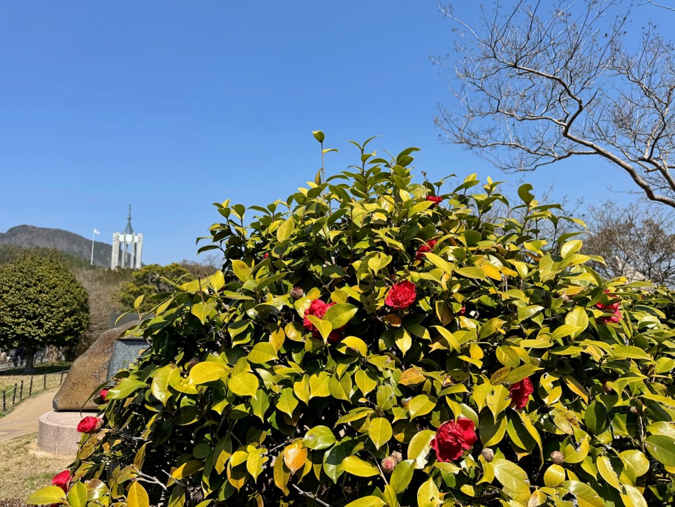 민주공원을 내려와 중앙공원으로 발길을 돌려본다. 아직 피어있는 동백꽃을 보니 겨울이 지나가고 봄이 오고 있음을 실감한다.