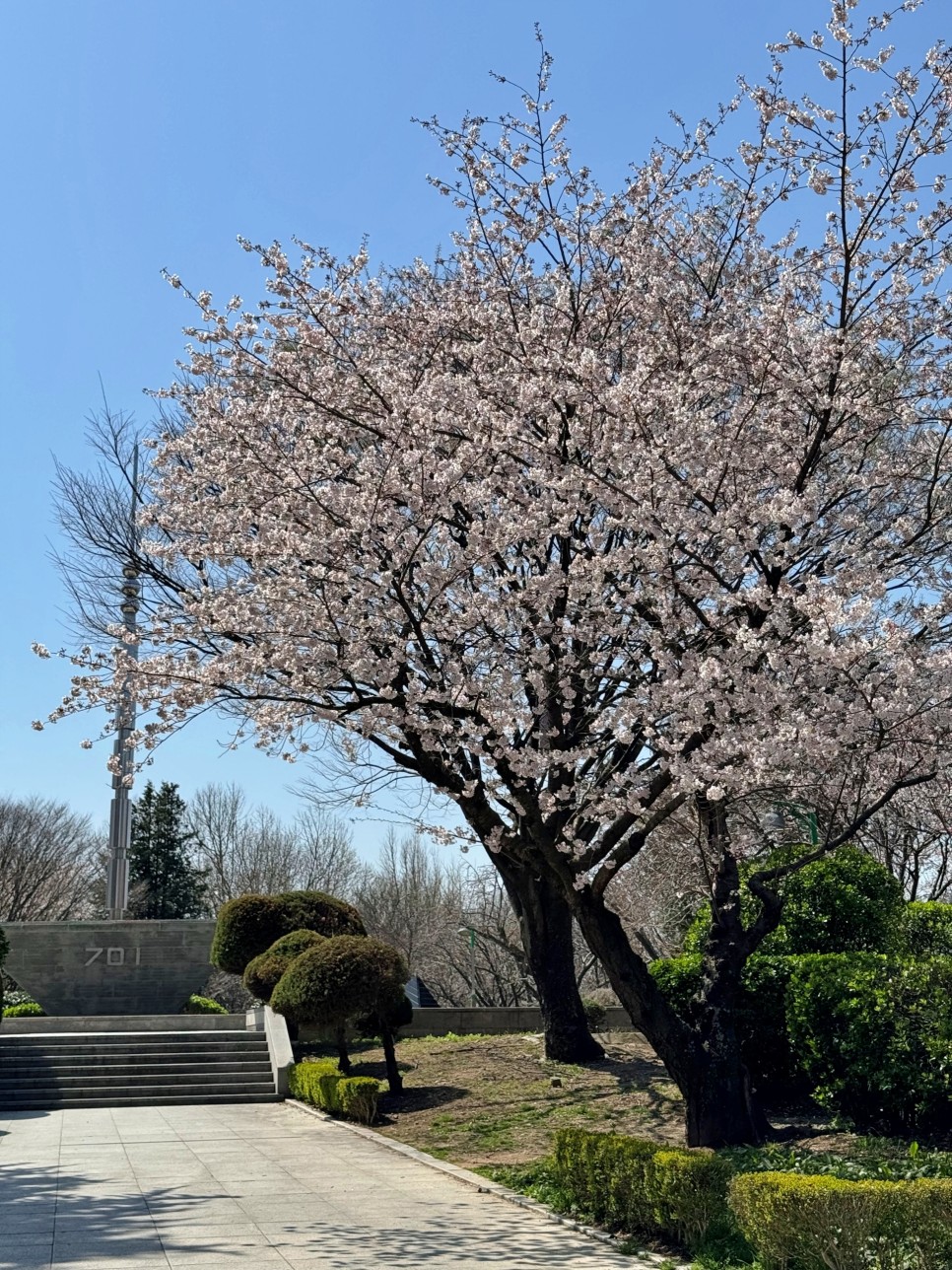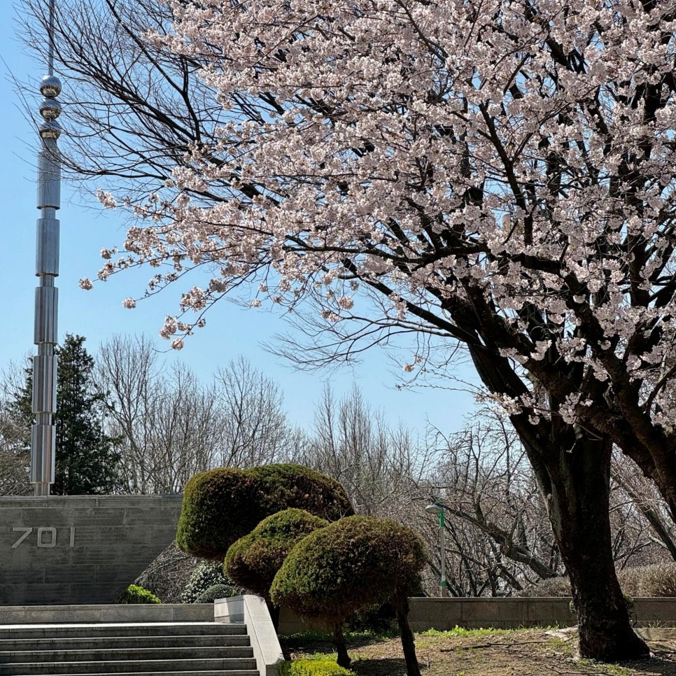 민주공원 내에 있는 벚꽃 스팟을 돌아보기로 했다. 701 전승비가 있는 곳. 지금은 많이 알려졌지만 예전에는 숨은 힐링 장소로 동네 사람들에게 인기가 많았던 곳이다.