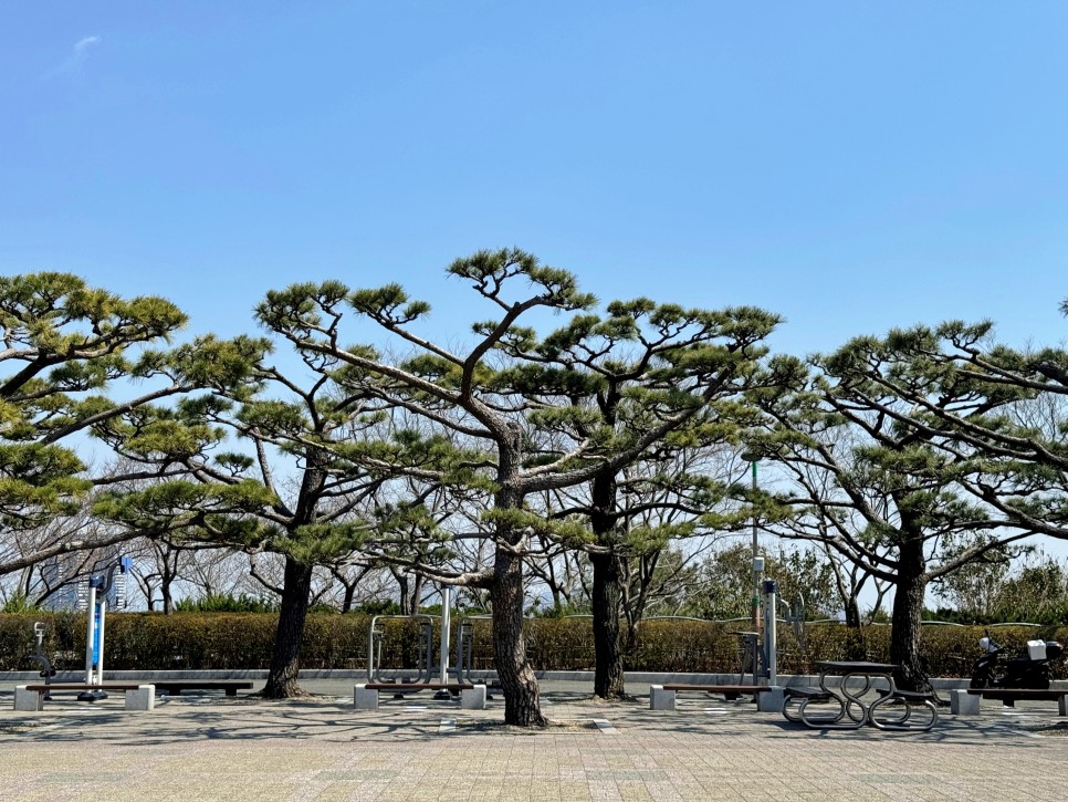 공원 광장에 하늘 높게 자리하고 있는 소나무의 위용은 참 멋지다. 흑백으로 담아도 멋졌을 풍경.