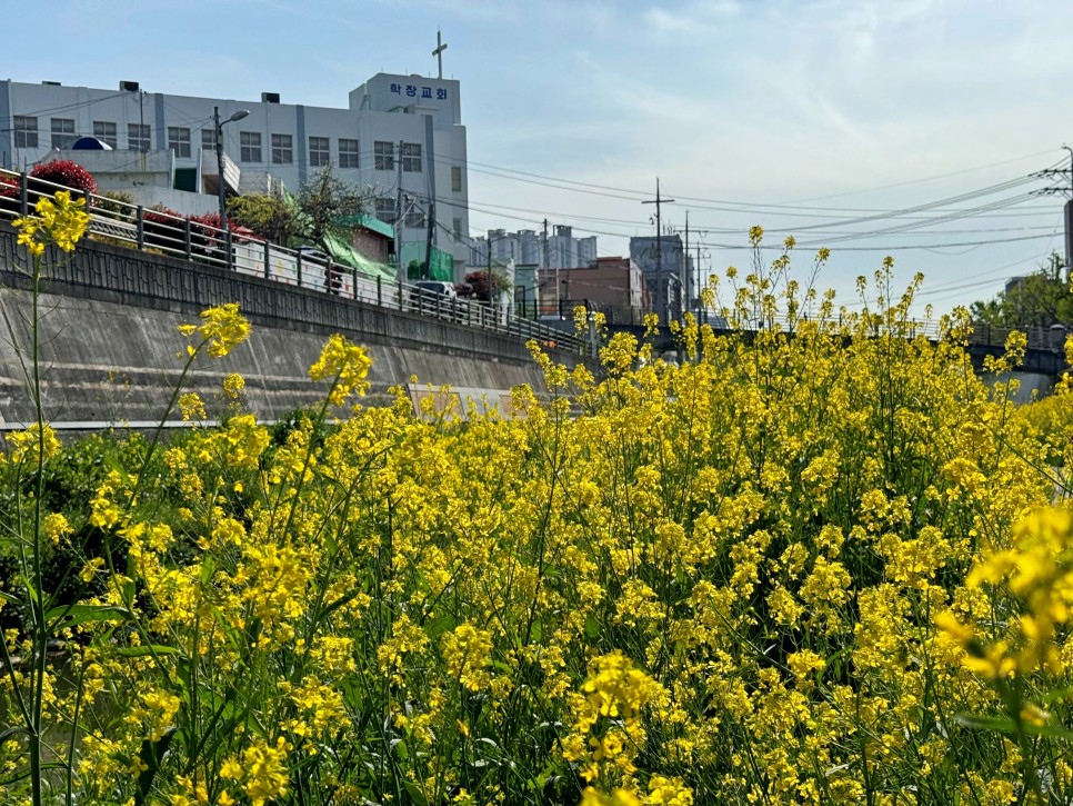 학장천의 유채꽃은 꽤 예쁘게 피었더군요.