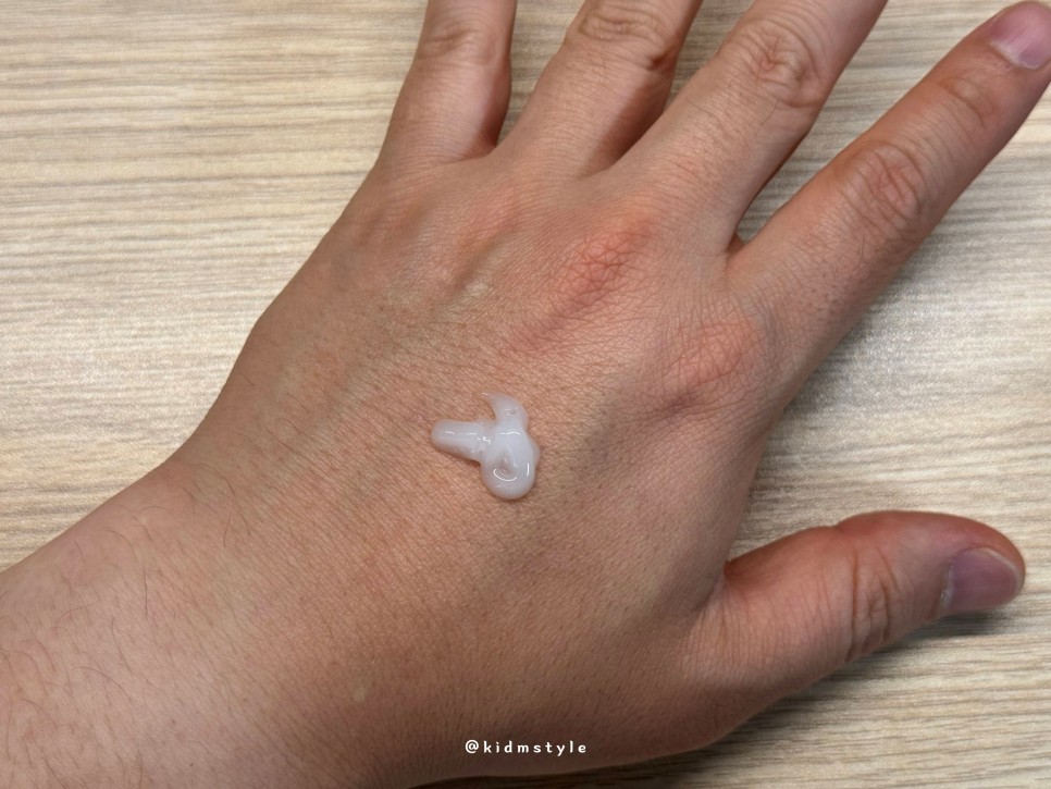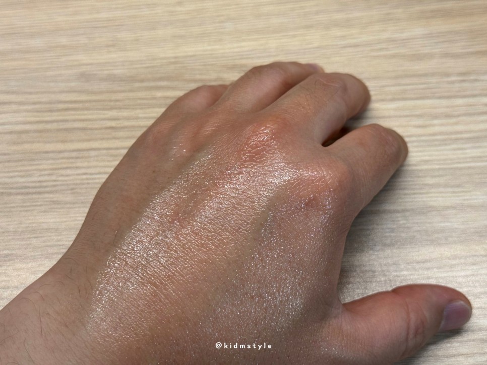 손등에 좀 짜보았다. 평소 토너와 로션 제품군을 따로 쓰는 것을 싫어해서 늘 올인원 제품을 사용하는 편인데 이 제품은 딱 충족하게 해준다.