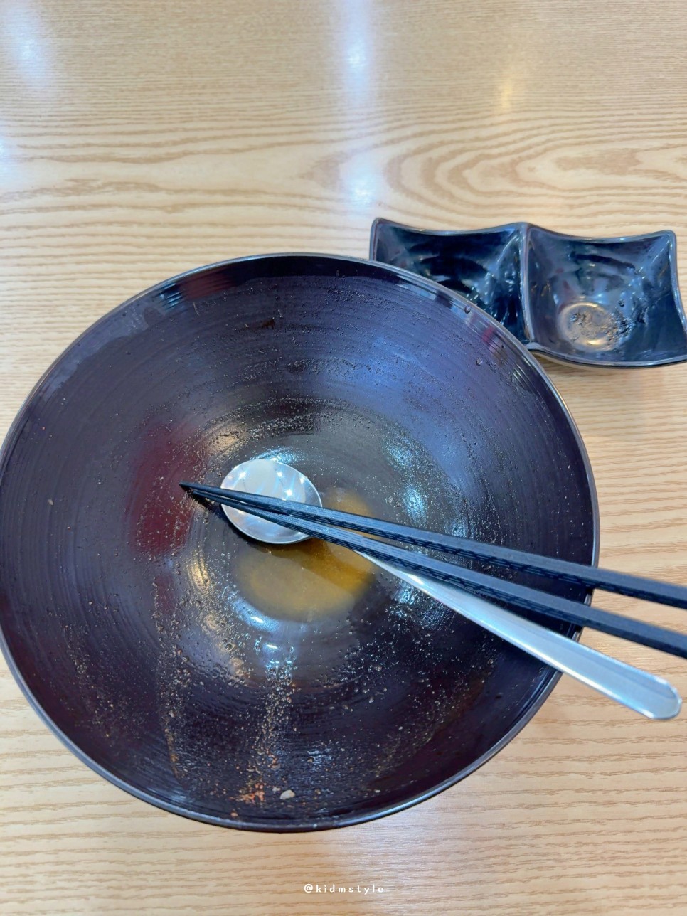 국물의 질감에 대해 이야기 안 할 수가 없는데 묵직함과 가벼움을 비율로 따지자면 묵직함 쪽이 70% 정도?