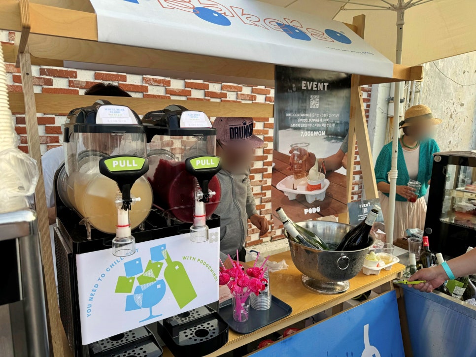 행사장에서 먹거리도 빠질 수 없는데요. 와인을 슬러시처럼 시원하게 해서 팔더군요. 날씨가 더운 오후라 인기가 많은 모습이었어요.