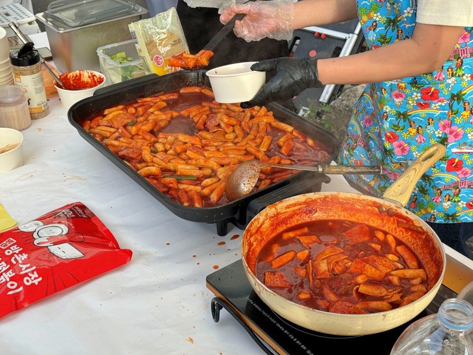 그리고 출출한 배를 채우기에 떡볶이만 한 게 없죠. 즉석에서 만들어 파는 떡볶이도 인기가 많았습니다.