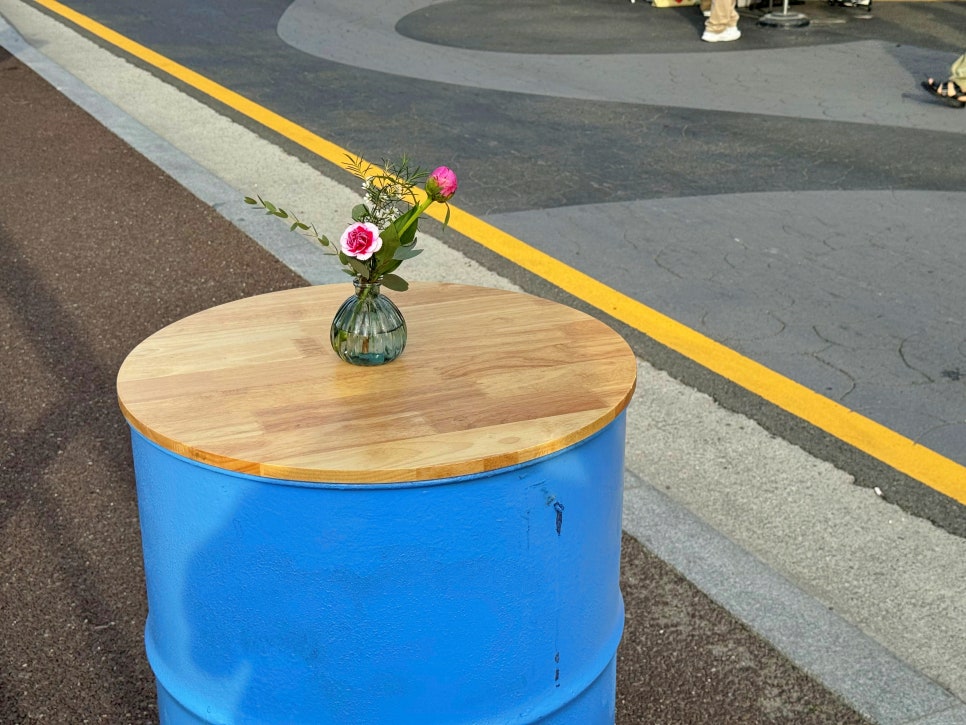 먹거리는 행사장 곳곳에 마련되어 있는 드럼통 테이블에서 즐길 수 있었고요. 행사에 필요한 부분을 꼼꼼하게 잘 준비한 모습이었습니다.