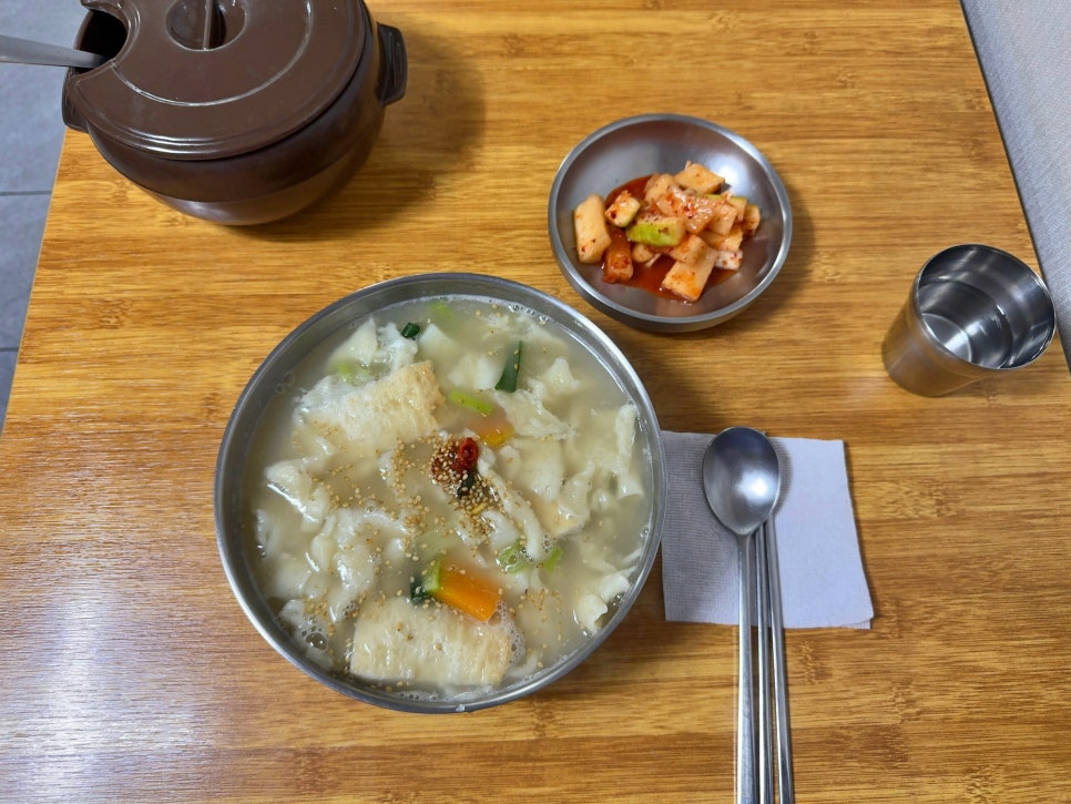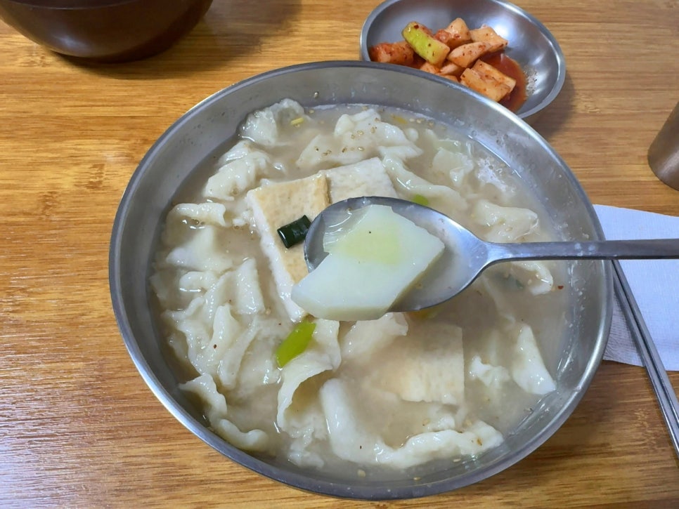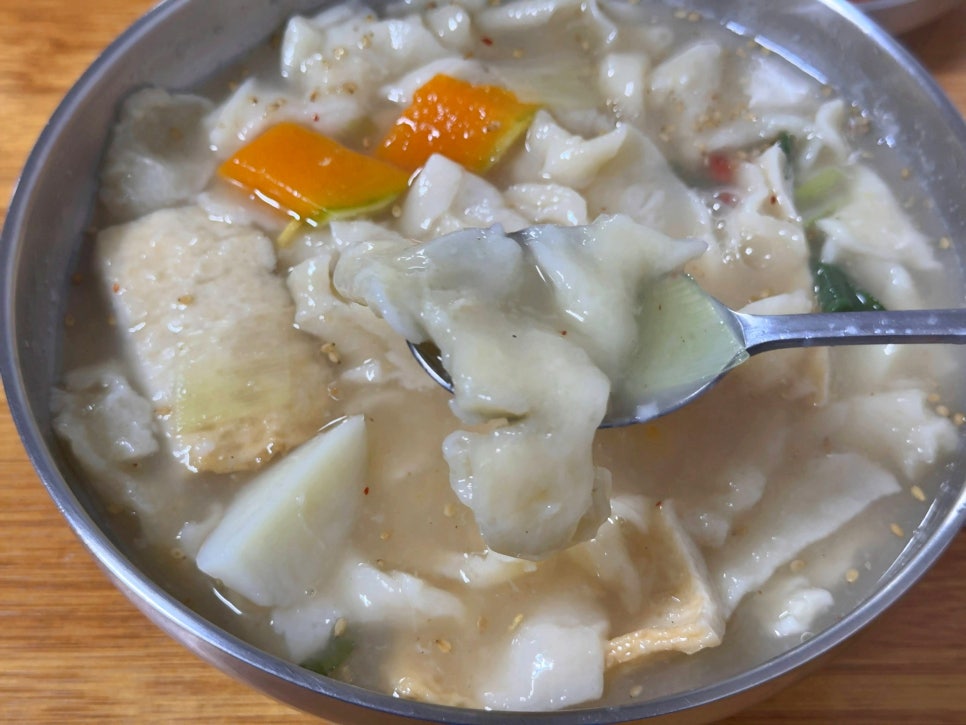여전히 집에서 끓이는 듯한 편안한 맛과 식감의 수제비입니다.