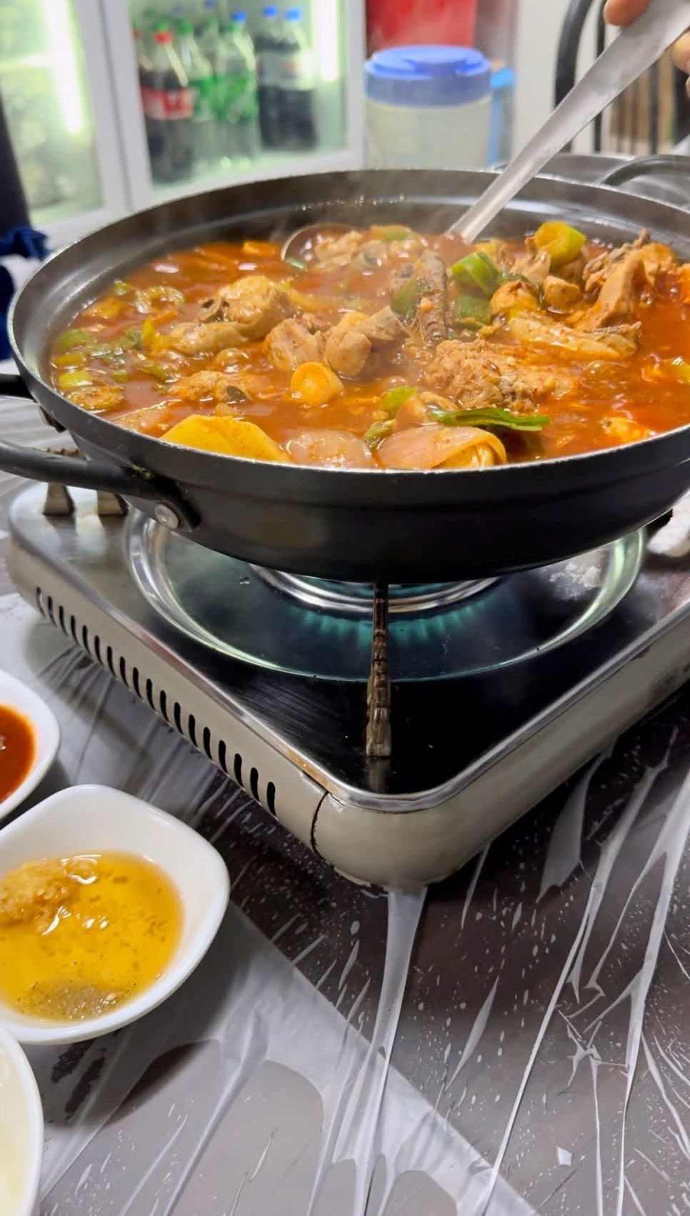 끓으면서 퍼지는 국물의 냄새는 후각을 자극하기에 충분합니다. 국물을 맛보니 끝 맛이 매콤하게 다가오네요.