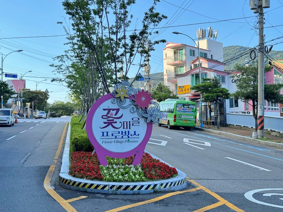 꽃마을은 지대가 높은 곳에 있는 마을입니다. 오르는 길의 경사가 제법 있어요. 이곳으로 오르는 '꽃마을로'는 겨울에 부산에 눈이 오면 금정구 '산성로'와 함께 부산에서 가장 먼저 도로 통제가 되기로 유명한 길이기도 합니다.