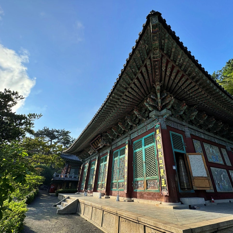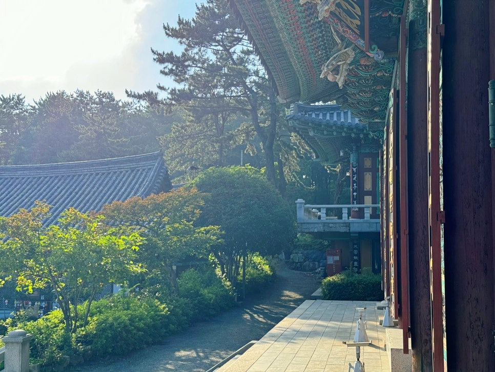 조금 걷다 보면 절이 보입니다. 전날까지 비가 세차게 내렸는데 다행히 오늘은 날씨가 맑습니다. 덕분에 맑은 풍경의 사찰을 담을 수 있겠네요.