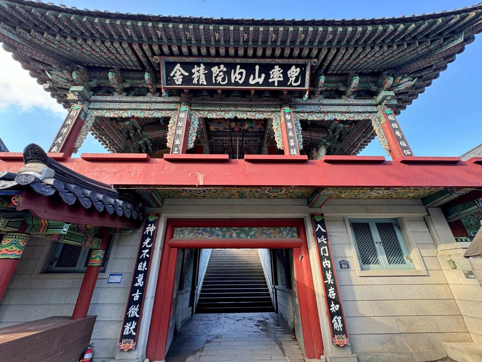 '도솔산 내원정사'라고 적힌 현판을 마주합니다.