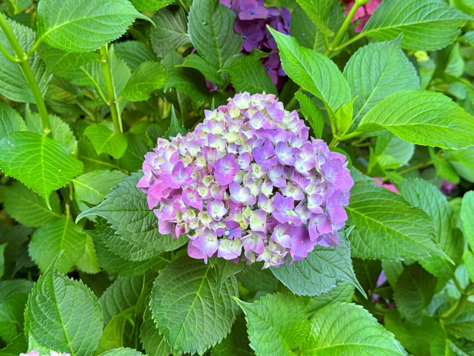 예쁘게 피어있는 여름꽃 수국이 반갑습니다. 수국은 토양의 산성도에 따라 꽃잎의 색깔이 달라지는데 여기서는 보라색 수국을 만나네요.
