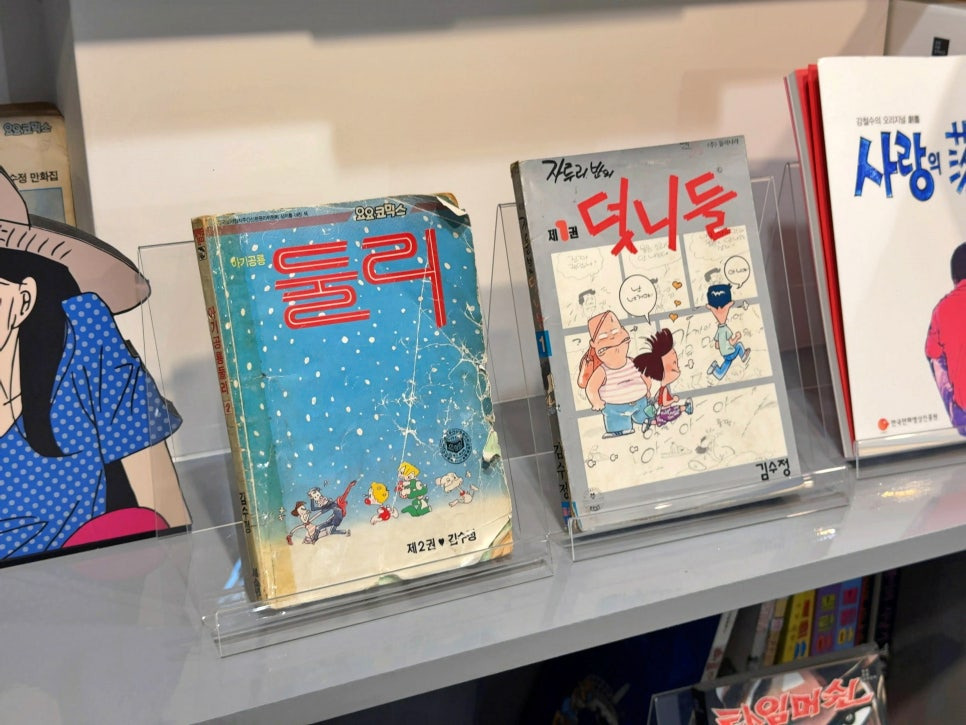 그 시절 인기가 많았던 작품들을 직접 볼 수도 있었어요. 누구나 잘 알고 있는 아기공룡 둘리 만화책도 참 반가웠습니다.