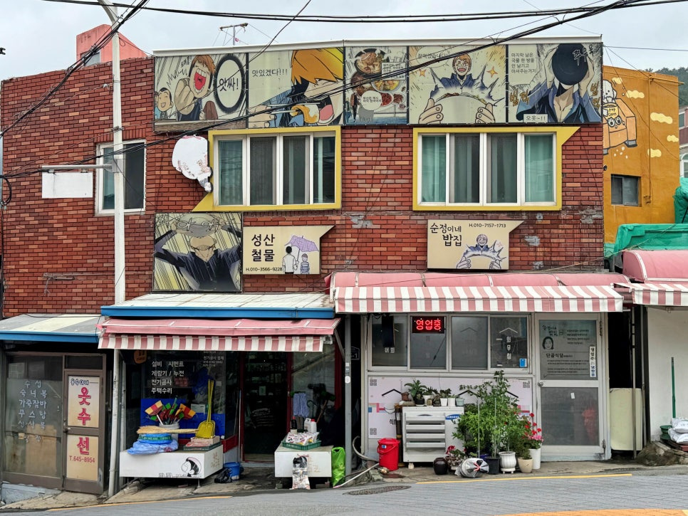 골목길에도 귀여운 만화 벽화가 그려져 있어서 발걸음을 멈추게 합니다. 지나가는 아이들이 특히 좋아하더라고요.