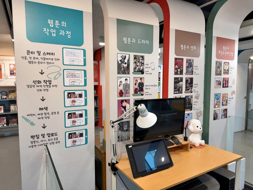 웹툰이 어떻게 제작되는지 과정을 살펴볼 수 있는 공간도 있고요.