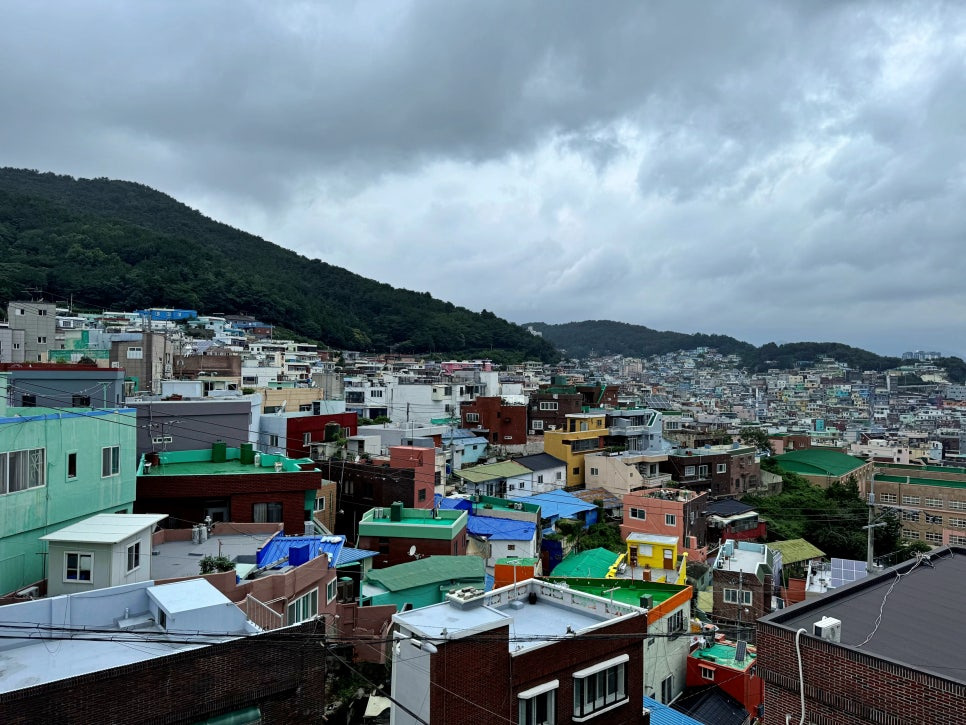 옥상 루프탑 공간에서 바라본 산복도로의 풍경입니다. 날씨는 흐리지만 산복도로의 정겨운 모습을 감상하기에는 충분합니다.