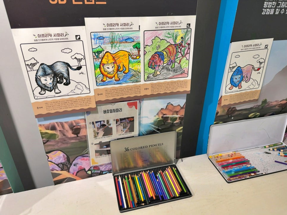 종이에 다양한 색깔의 색연필로 자신만의 공간을 채워서 세상에 하나밖에 없는 작품을 만들어 보는 컬러링북 체험공간도 아이들에게 인기가 참 많습니다.