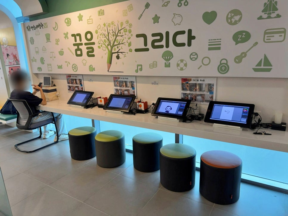 만화체험관 내부는 크게 몇 가지 파트로 구성되어 있는데요. 우리나라 만화 연혁, 유명 작가 소개, 웹툰작업 과정 소개, 스케치를 통한 컬러링 공간, 타블렛 체험 공간 등으로 나눠져 있습니다.
