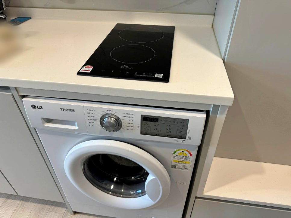 인덕션과 세탁기가 있다. 연박으로 숙박 시 세탁기는 상당히 유용한 아이템이 된다.