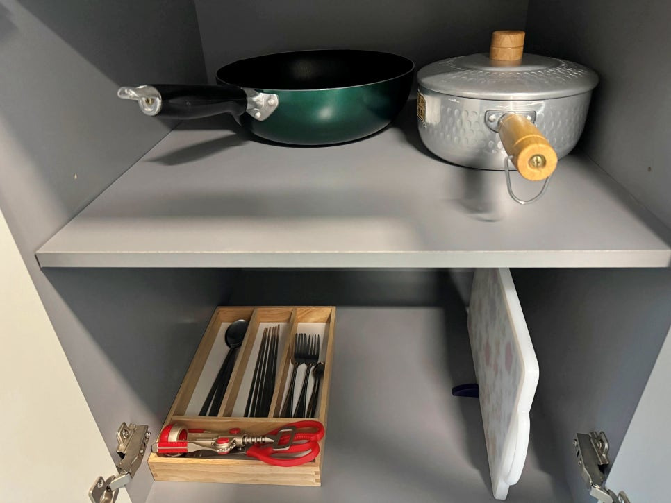 후라이팬과 편수냄비, 수저 그리고 와인오프너 등 간단한 도구들이 있으니 참고하시기 바란다.