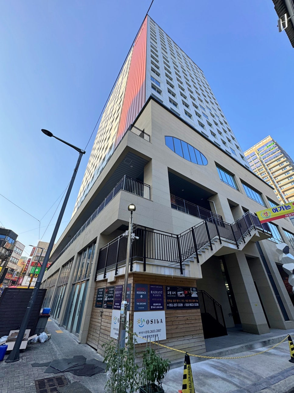 위로 올려다보니 깔끔한 분위기의 모습이 인상적이다. 잘 지어놨다. 올해 완공하고 7월에 오픈한 정말 따끈따끈한 신상 남포동 숙소이다.