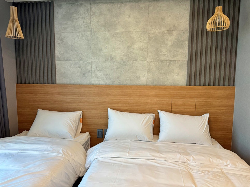 내가 배정받은 숙소는 슈페리어 트윈룸으로 3인이 숙박할 수 있다. 싱글 침대 하나와 더블 침대 하나가 놓여 있다.