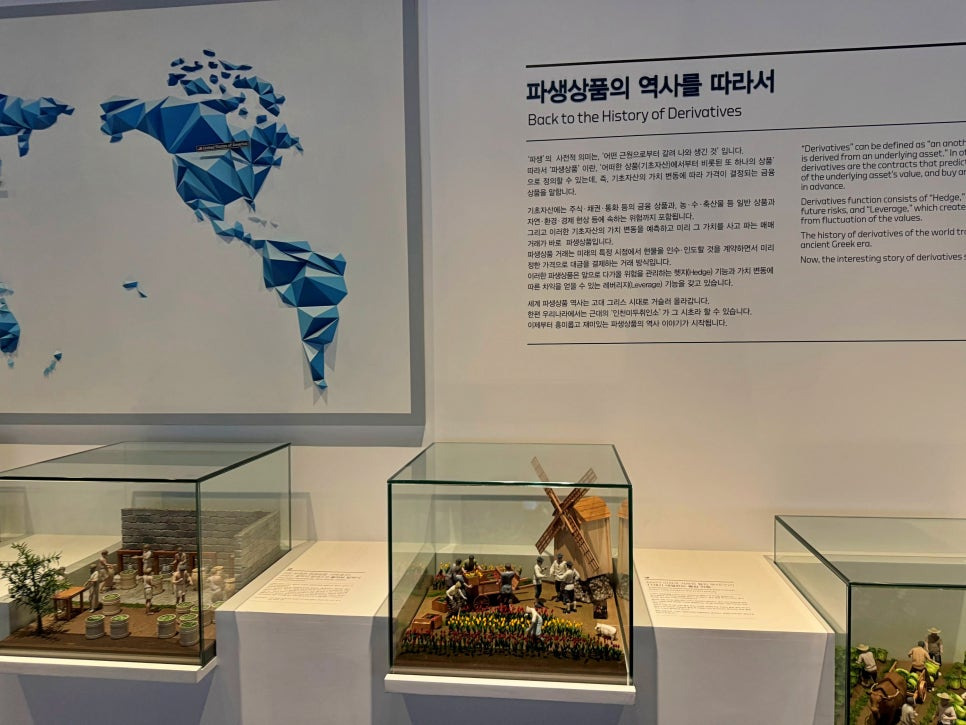 파생상품의 의미와 역사를 모형으로 기록해 놓았습니다. 하나하나 읽어보니 꽤 흥미롭더군요.