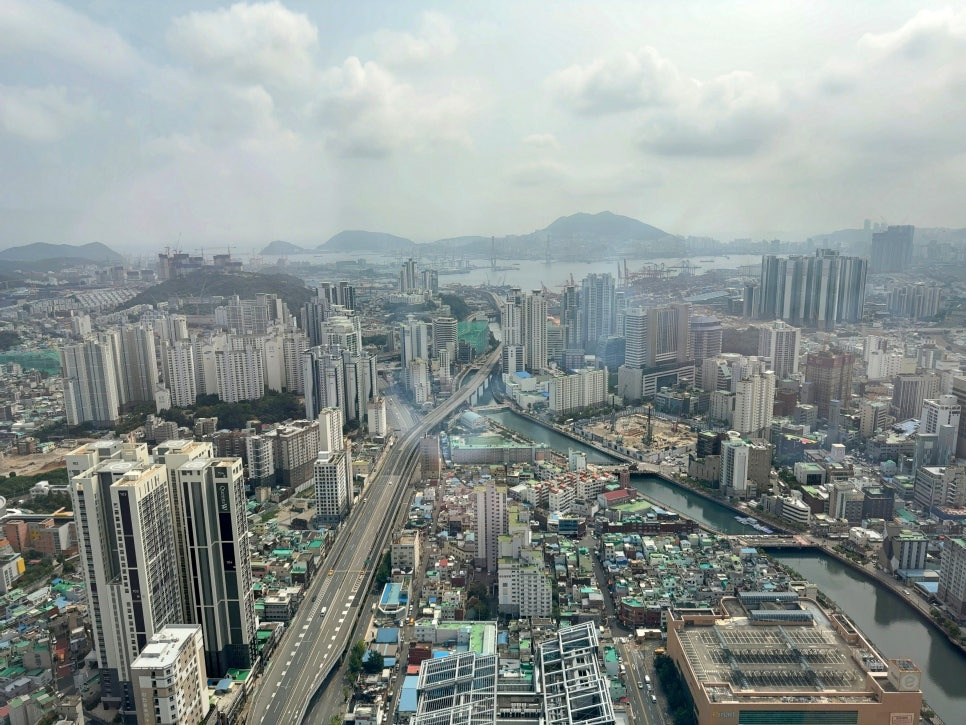 박물관 관람을 마치고 51층 로비에서 바라본 부산의 풍경입니다. 날씨가 조금 흐렸지만 꽤 선명하게 보이네요.