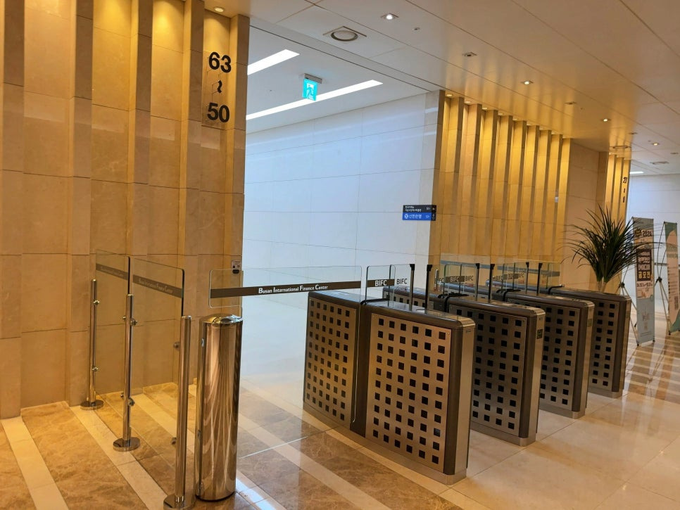 수령한 방문증을 게이트에 대고 51층으로 가는 엘리베이터를 타면 됩니다.