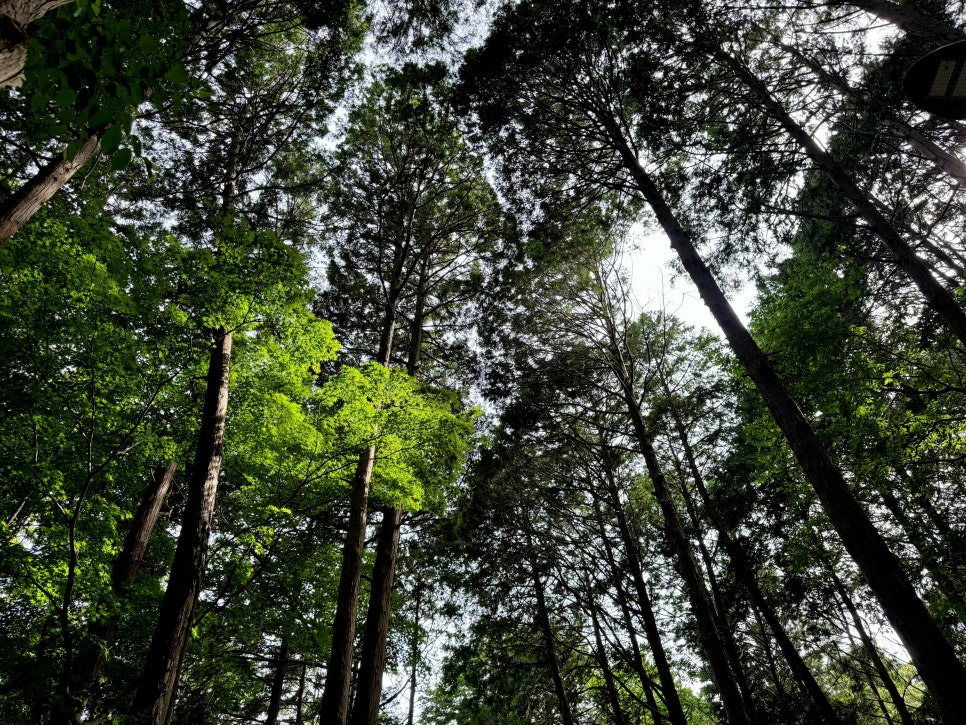 하늘이 잘 보이지 않을 정도로 높게 자란 나무들 덕분에 자연 속에서 힐링을 제대로 하는 경험을 합니다.